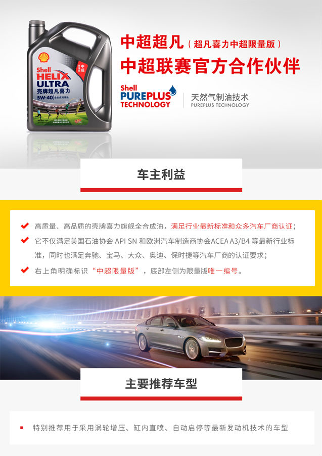 型號:超凡喜力中超限量版 4L 5W-40 SN/CF 機(jī)油分類:全合成機(jī)油 機(jī)油級別:SN/CF 容量:4L